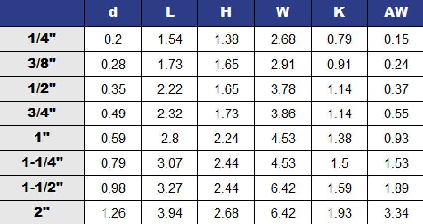 - Size 1/4" to 2"