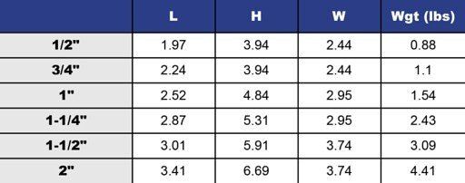 - Size 1/2" to 2"