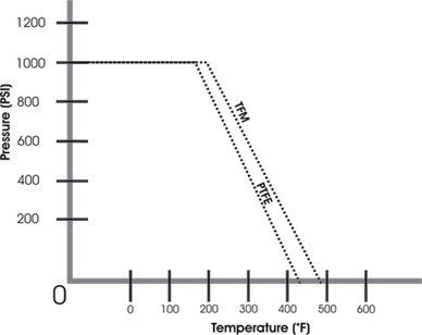 - Temperature Range (RTFE) -20°F to 500°F