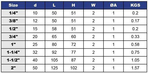 - Size 1/2" to 2" Size Range
